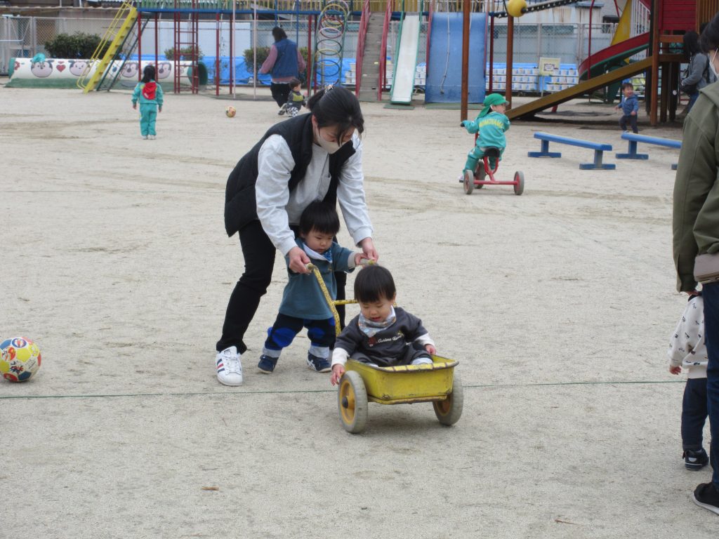 幼稚園の園庭で遊びました。