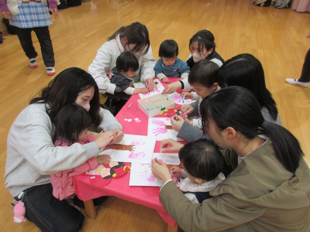 ひな祭り製作や、手形スタンプで作品作りをしました。