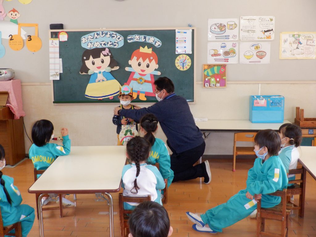 今月もコロナ感染対策のため、年少・年中組は各クラスでの誕生会となりました。始業式もそうでしたが、先生や発表するお友達の話をしっかり聞けていました。話を聞く態度もだいぶ身についてきましたね!