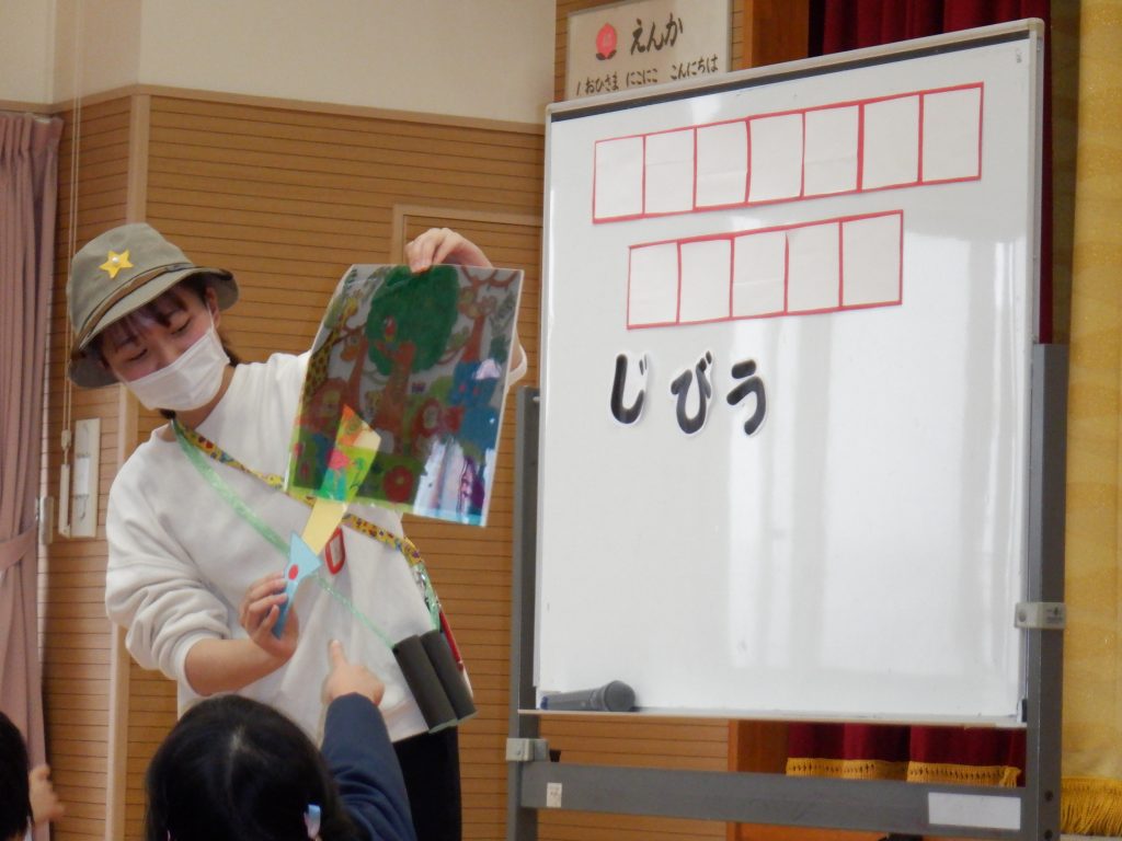 園長先生から「1月はその年の最初の月です。1年間は何ヶ月あるか分かりますか?」という問いかけにさすがの年長組さんは「12ヶ月!」と答えていましたよ。