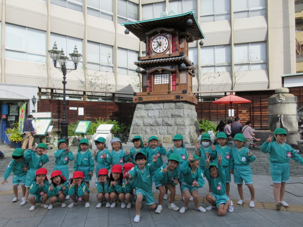 ゆり・さくら組が園外遊びで、道後プリンスホテル内にある足湯と道後散策をしに行きました。足をお湯の中につけると「あっつい!!」「あったか~い」「またはいりたい~」と言っていました(*^^*)