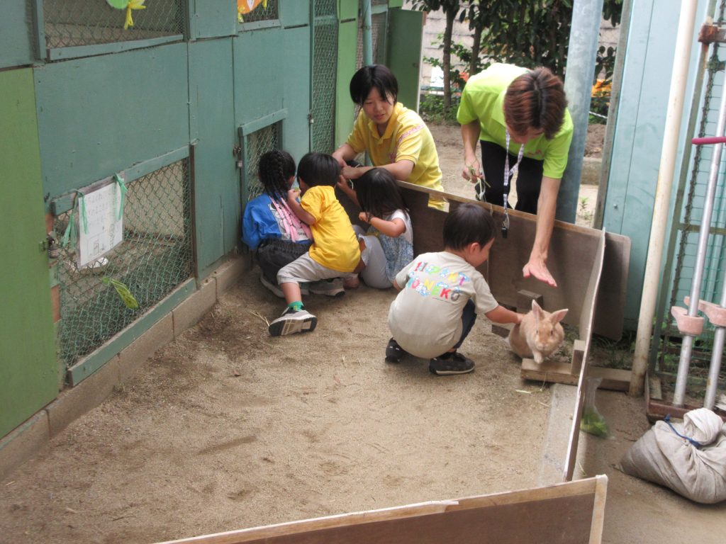 園庭では、幼稚園で飼っている、「うさぎとかめ」の触れ合いをしました(#^.^#)
