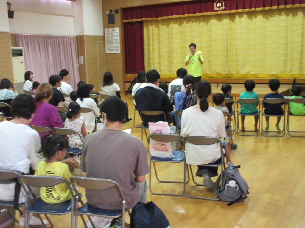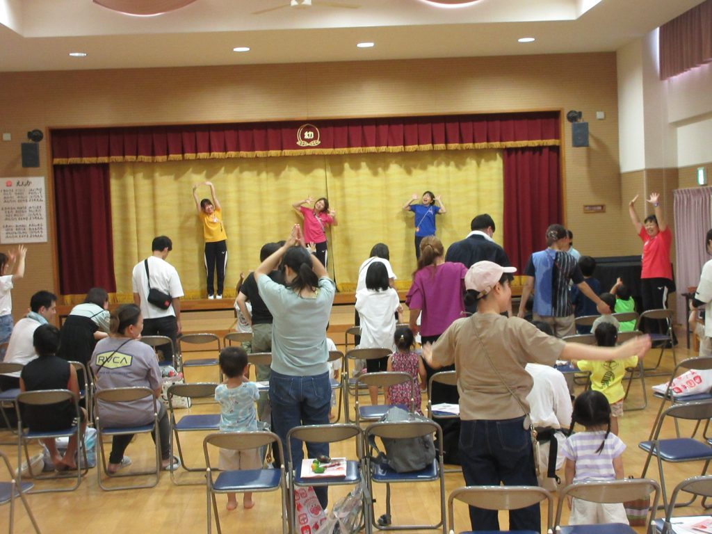 先生たちの出し物もありましたよ。「ちょっとだけ体操」では、お家の方も一緒になって、ちょっとだけ体を動かしました( ´艸`)