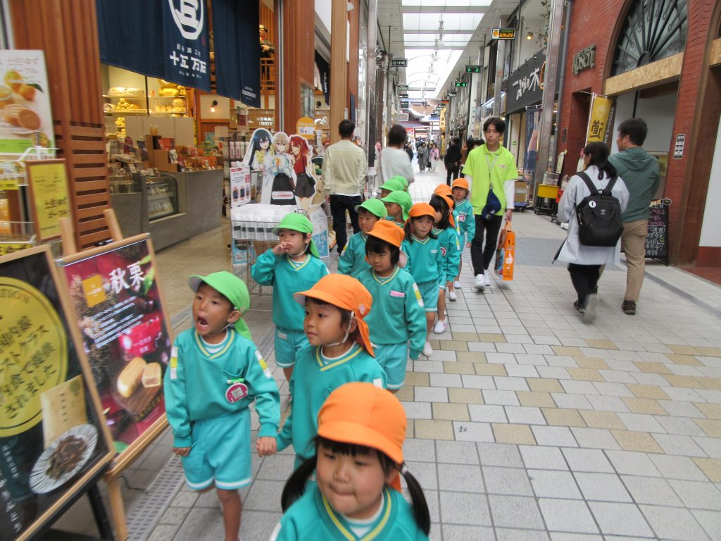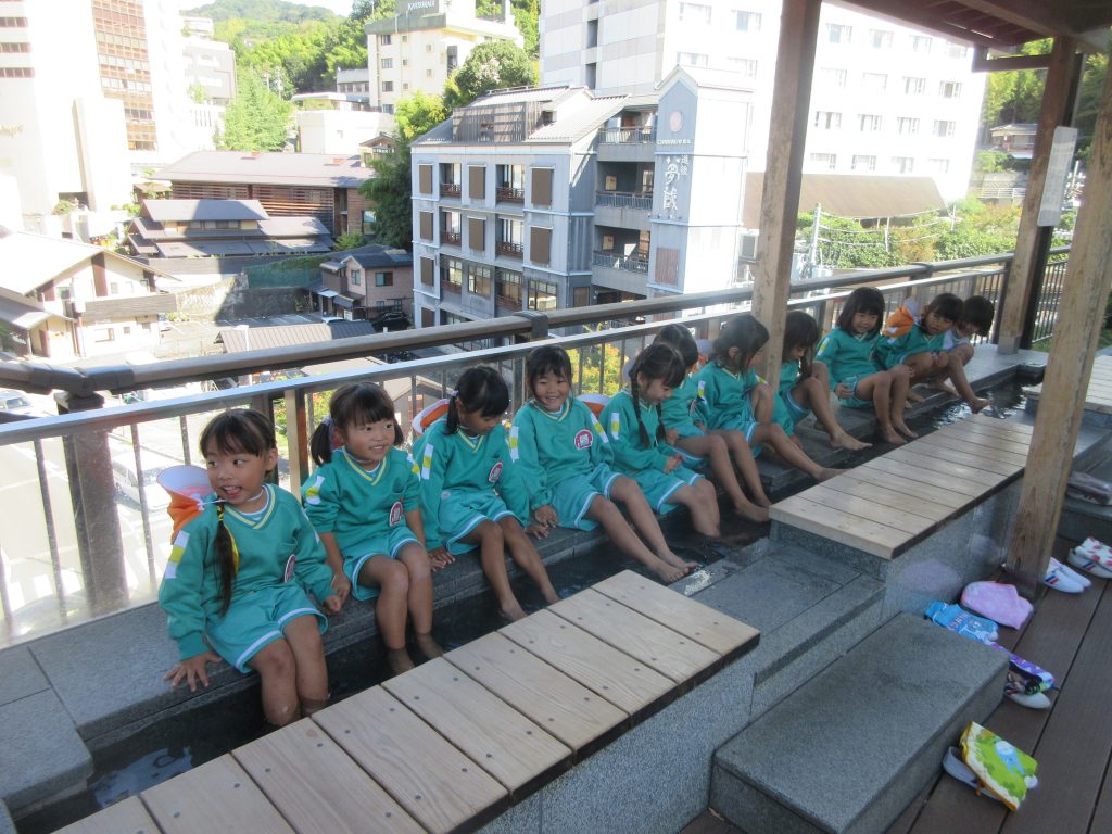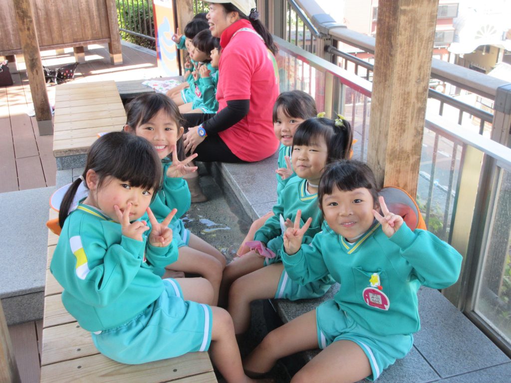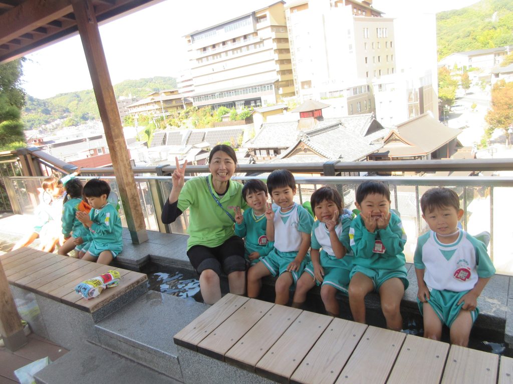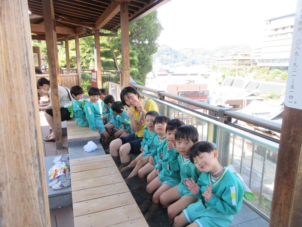 10月28日(火)・30日(木)年中組が、幼稚園のバスに乗って、道後散策と空の散歩道の足湯に行きました。