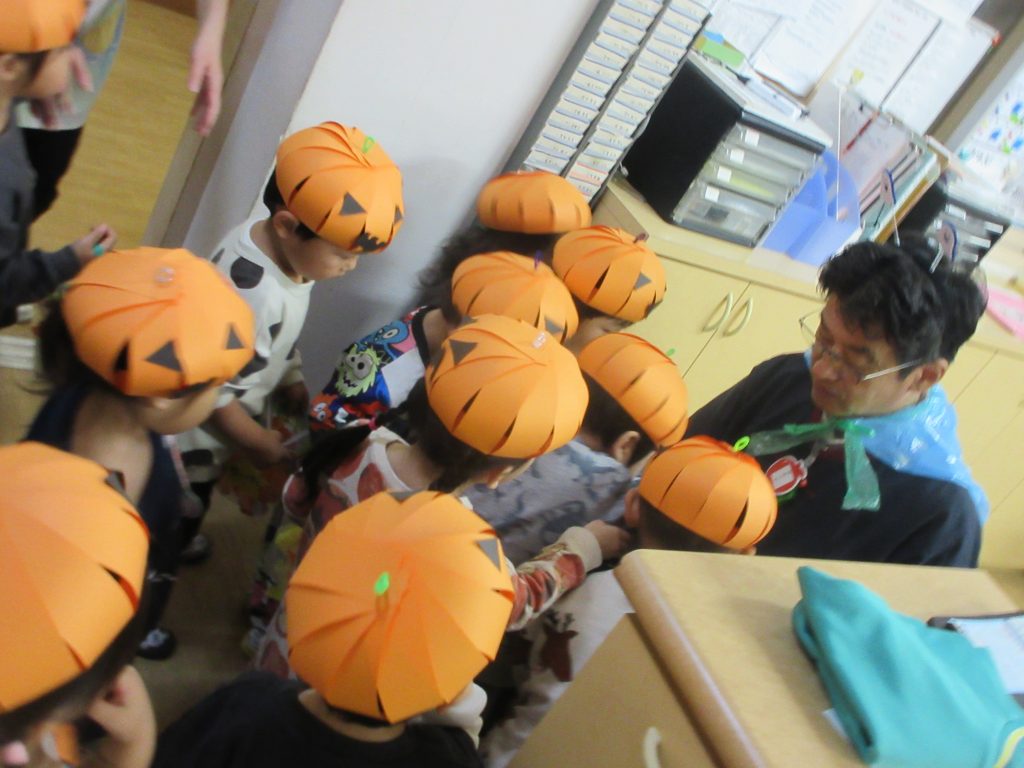 園長先生も仮装して、「お菓子をあげるので、いたずらしないでくれますかー!?」と、言いながらお菓子を配っていましたよ(*^^)v