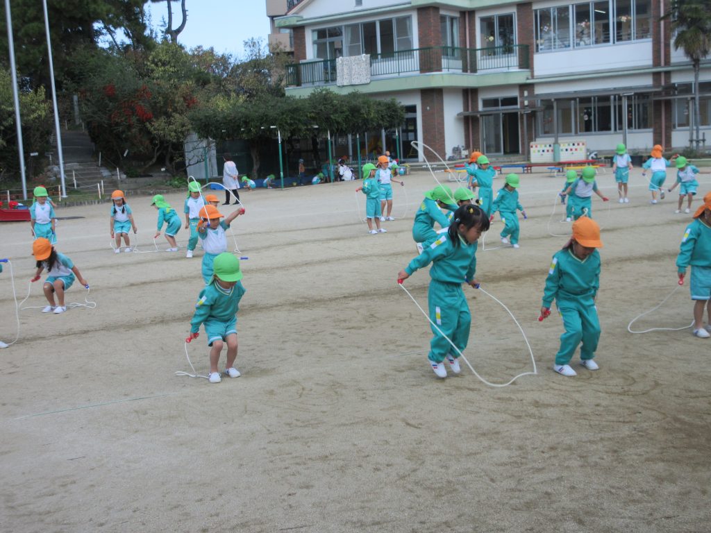 縄跳びの練習もしました。他クラスの動きに刺激されて、頑張って跳ぶ姿も見られました。