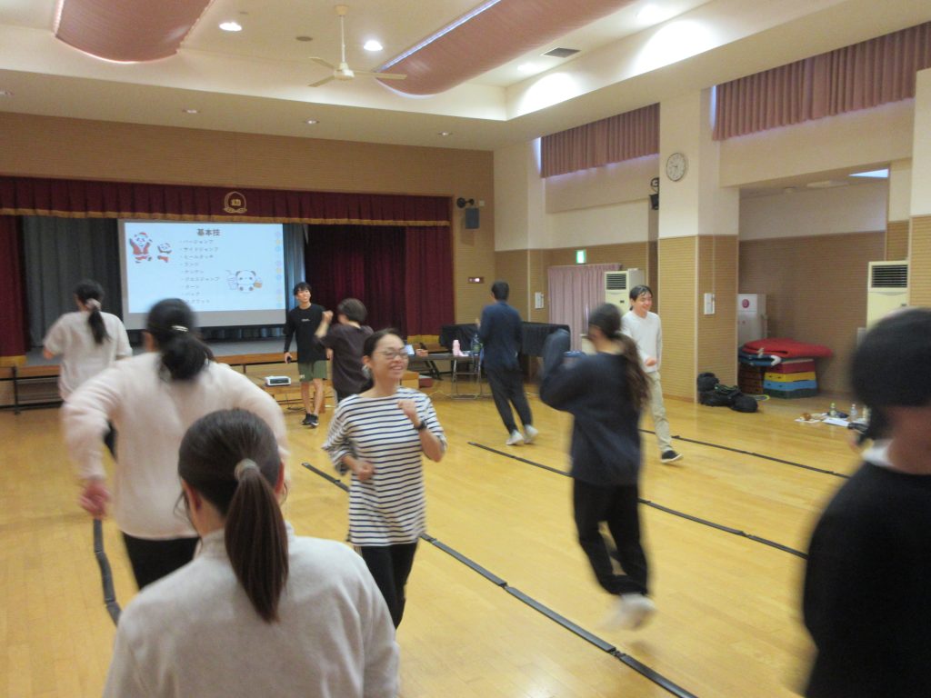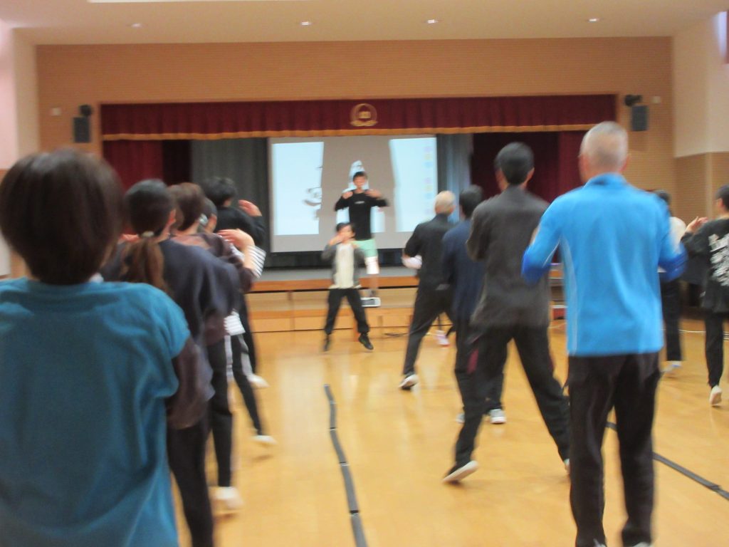 基本技も教えていただきました。技のバリエーションをつけることで、難易度が上がっていきます。最後は、全員同じ動きをリズムに合わせて行うことで、一体感となり笑顔になっていました。