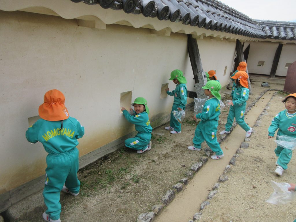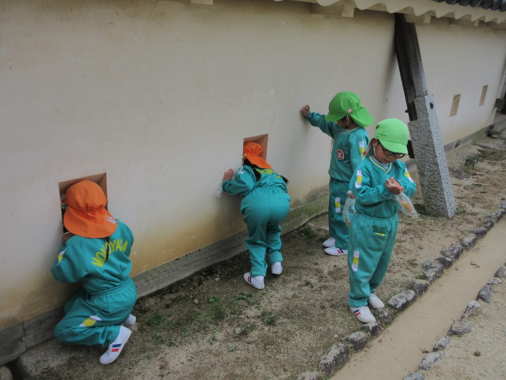 鉄砲の「狭間」から、顔を出して外の様子を覗いていました。普段見ることが出来ない景色に大喜びでした。