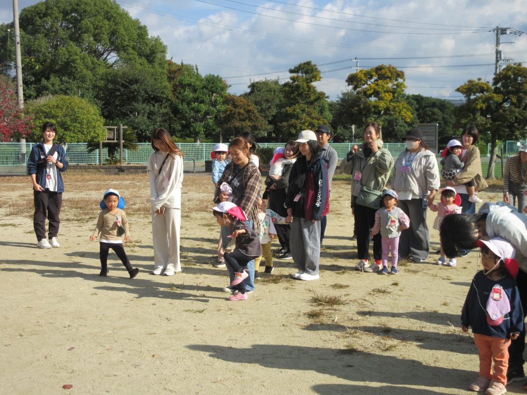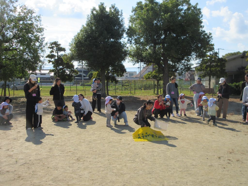 11月17日(月)こあら組が、遠足で「東垣生公園」に行きました!!最初にみんなで挨拶をした後、準備体操をしました(*^^)v