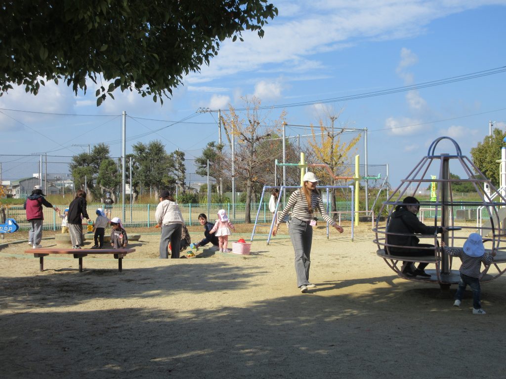公園の遊具でも遊びました。お天気も良く、ブランコに砂場、滑り台等、自分たちで好きな遊びを見つけて遊びました。