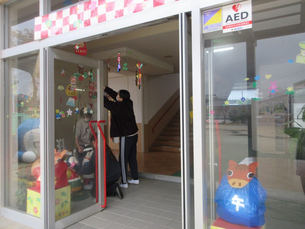 玄関には、運転手さん手作りの門松やしめ縄が飾られ、お正月の準備が整いました。