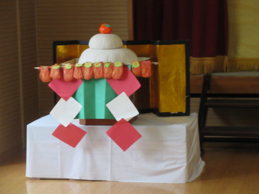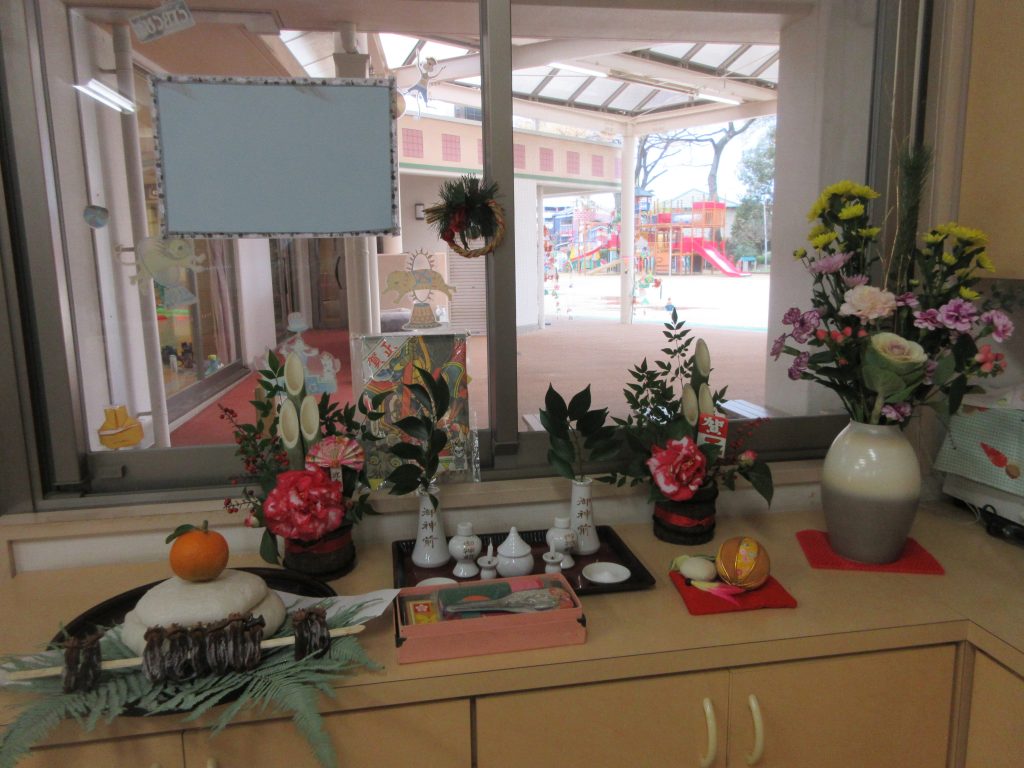 子どもたちと「お餅つき」をして作った、「鏡餅」もお供えしました。