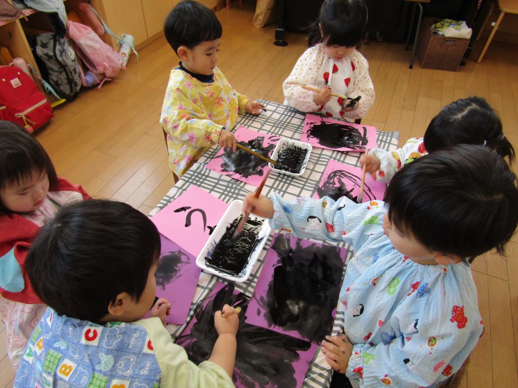 お部屋でも、筆を持って書き初めをしましたが、書くのが楽しくて夢中になっていました( *´艸`)