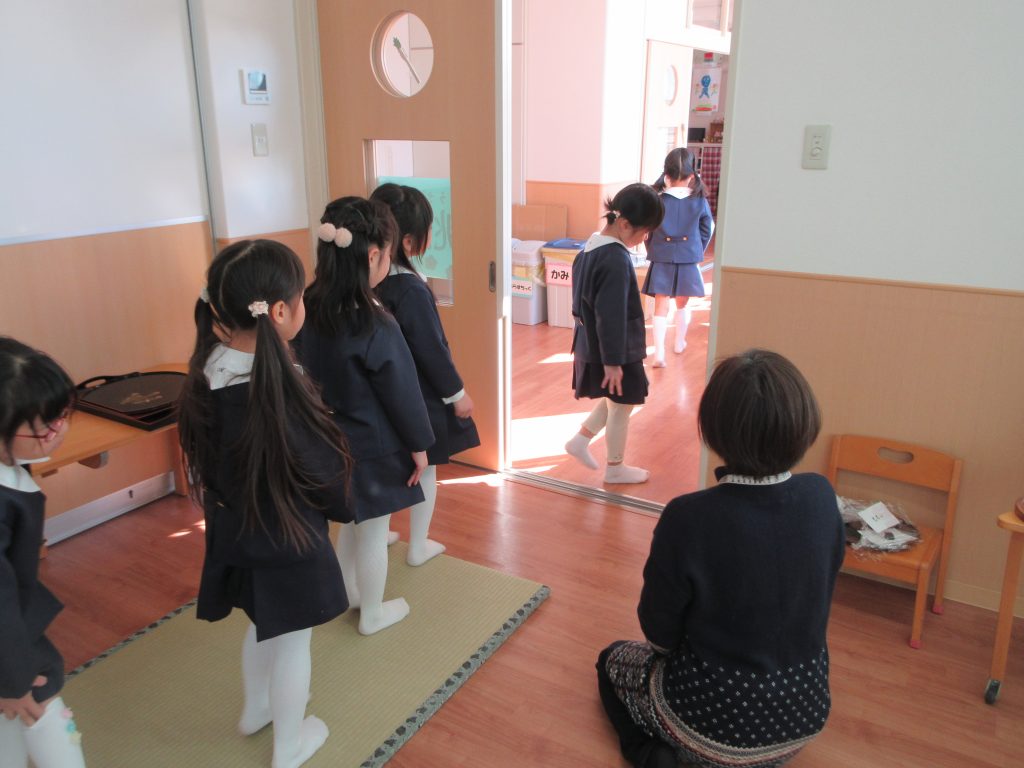 飲んだ後は、「けっこうなおてまえでした。」と言って懐紙で口元を押さえて拭いていました。終わって帰る時も、畳の縁を踏まずに静かに歩いて帰りました。卒園まで後少しです。一つ一つの体験を大切にして過ごしていきたいですね!(^^)!