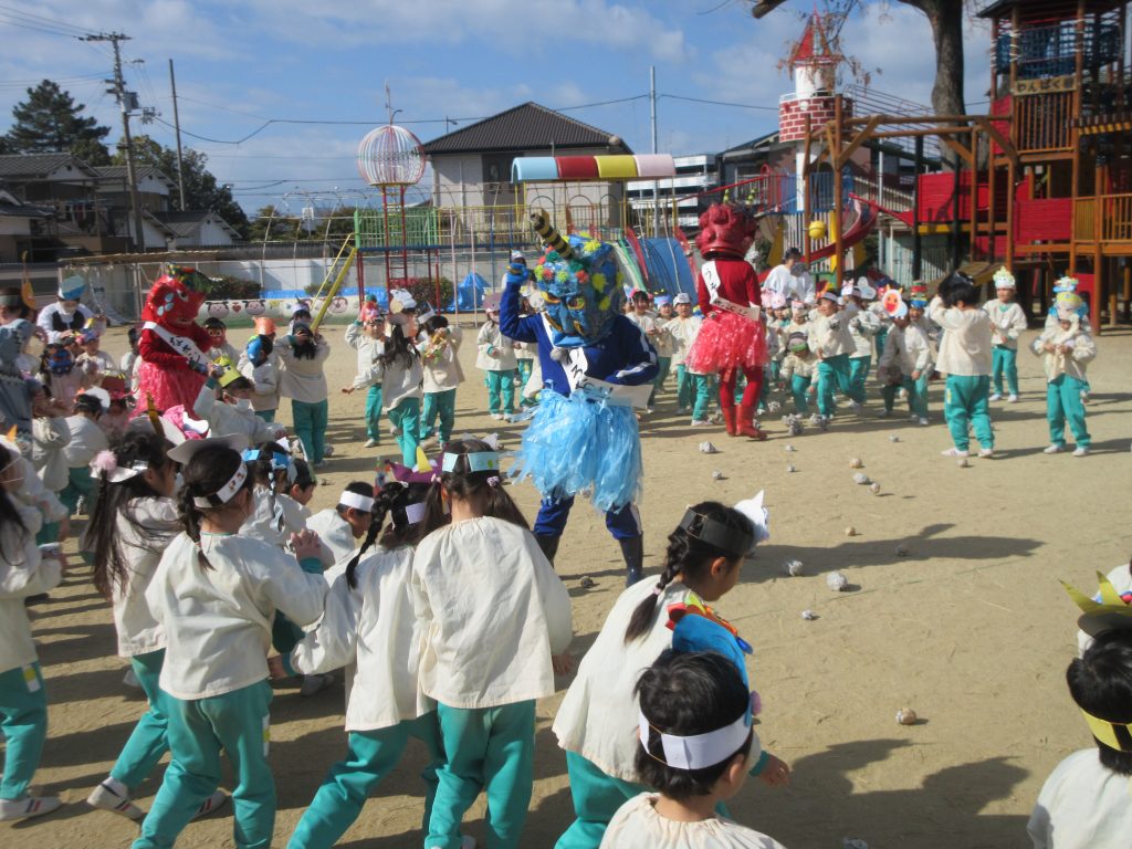 優しくなった鬼さんと一緒に「鬼さんスクラム」を、元気いっぱい踊りました。