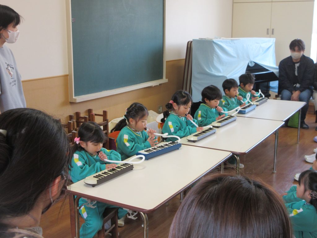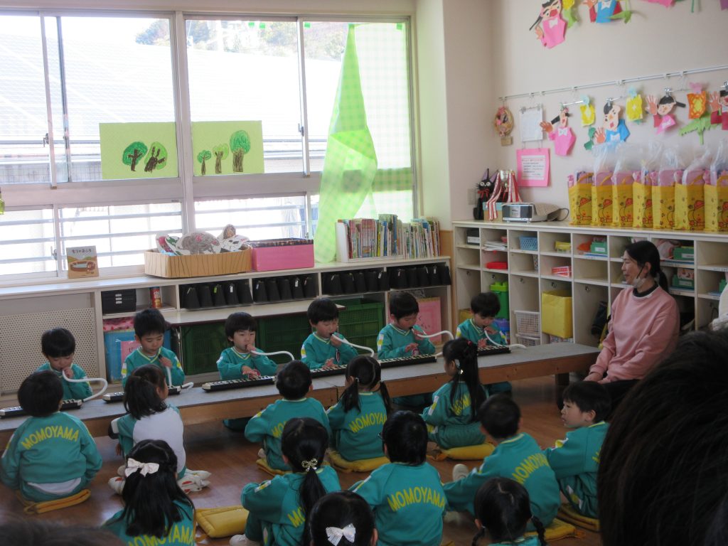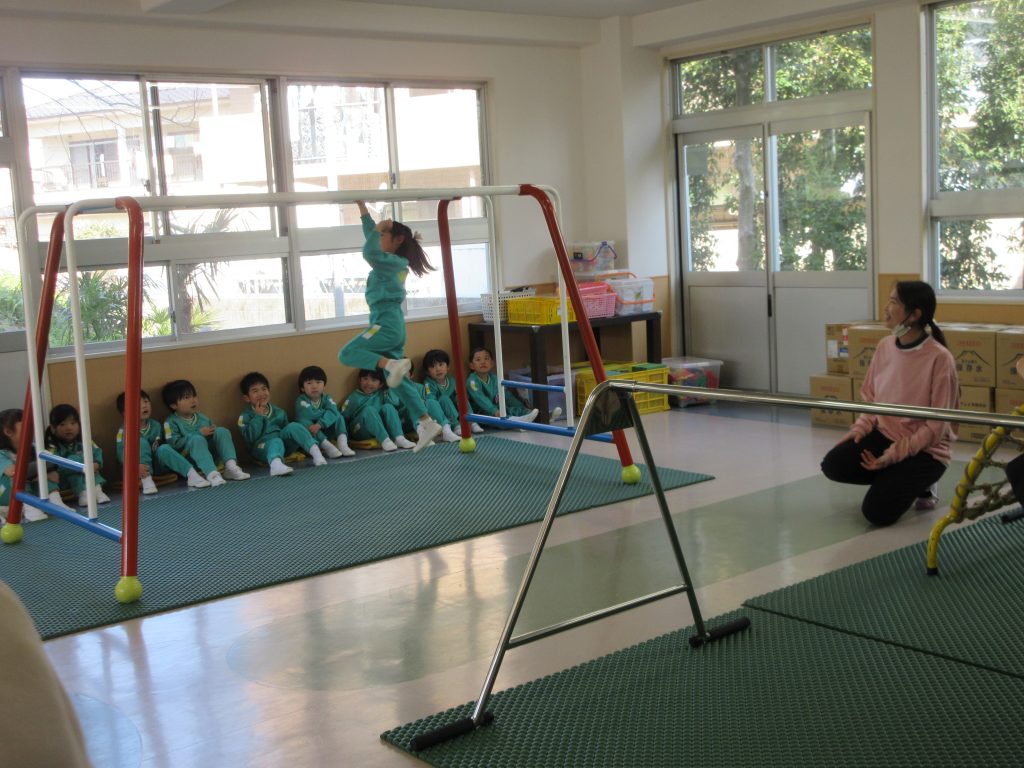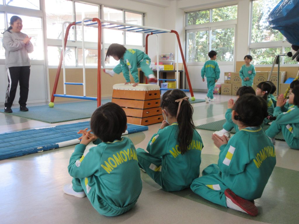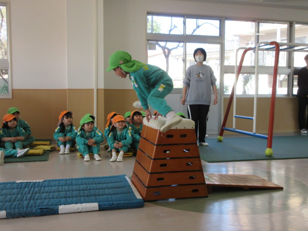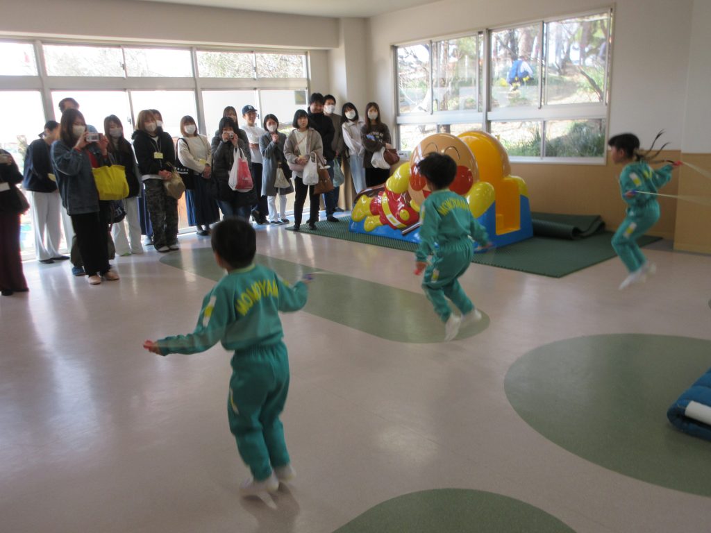 「跳び箱」「鉄棒」「縄跳び」「鍵盤ハーモニカ」「ペープサート劇」等、一年間、頑張ってきたことをみんなの前で発表しました。できることがたくさん増えて、自信に満ち溢れていました!!