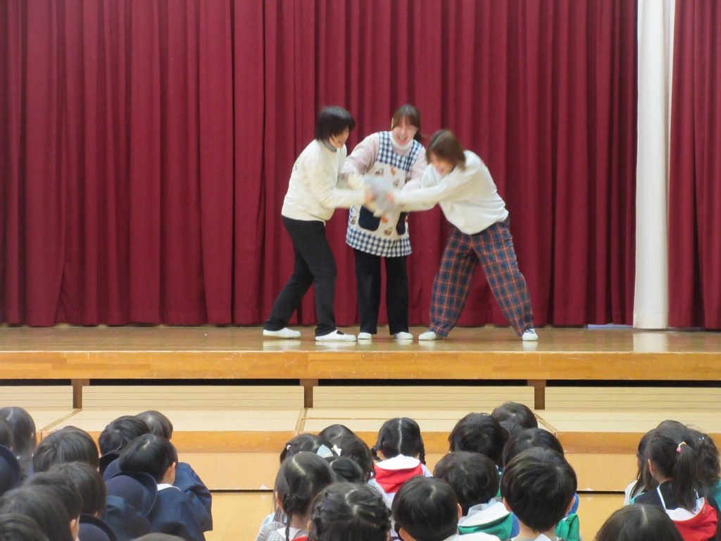 年少組の先生達が、入園した時は、出来なかったことが、出来るようになった1年間の成長した姿を劇にして見せてくれました(#^^#)