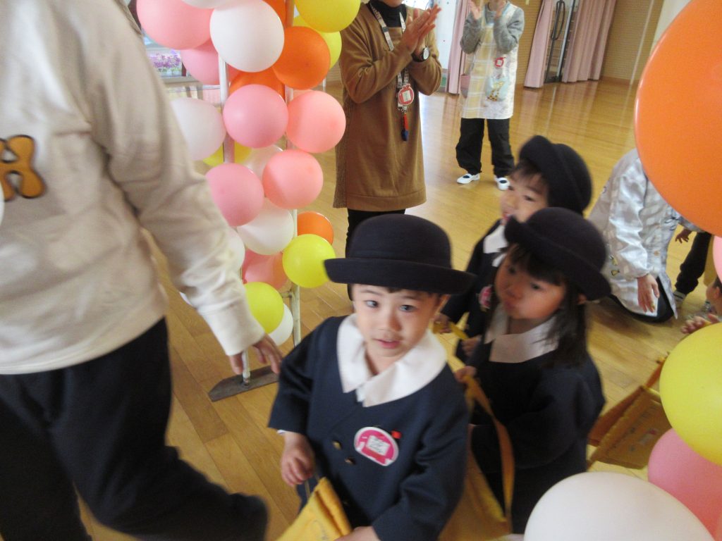 最後は、風船で作ってある進級トンネルを通りました!(^^)! 今年度も保護者の皆様の幼稚園へご協力・ご理解のお陰で、無事1年間を終える事ができました。ありがとうございました。今後ともよろしくお願いいたします。